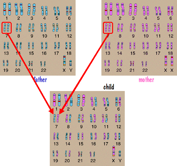 If the child inherited a purple gene from one parent and a white gene from the other, the child’s flower would be purple because purple is dominant. And it would not matter which parent contributed the purple gene and which the white gene.